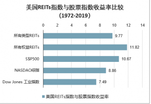美國REITs指數與股票指數收益率比較(1972-2019)