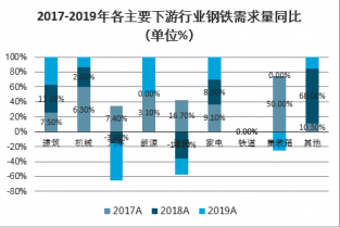 2017-2019年各主要下游行業鋼鐵需求量同比(單位%)