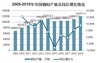 2009-2019年中國鋼材產(chǎn)量及同比增長情況