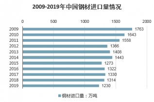 2009-2019年中國鋼材進(jìn)口量情況