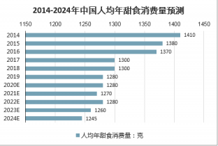 中國人均年甜食消費量將保持穩定,自2020年至2024年,估計將以復合年增長率約–0.7%的較慢速度減少。