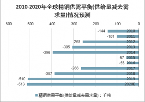 2010-2020年全球精銅供需平衡(供給量減去需求量)情況預測