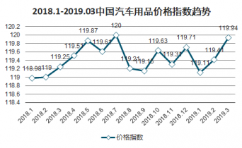 2018.1-2019.03中國汽車用品價(jià)格指數(shù)趨勢(shì)