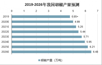 加之我國胡椒的種植面積呈現增長態勢以及胡椒種植技術水平的提升,我國國內胡椒產量有望維持增長態勢,預計到2026年我國胡椒產量將達到6.48萬噸。