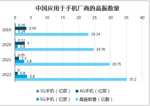 根據草根調研及互聯網公開資料進行整理,以單部低端3G手機的晶振需求為3顆、4G智能機晶振需求為6顆、5G手機晶振需求為8顆計算,得出2021年國內手機廠商晶振市場規模約19.42億元,符合增長率為29.5%;到2022年國內手機廠商晶振需求為35.2億顆,市場規模達到2019年的2倍。