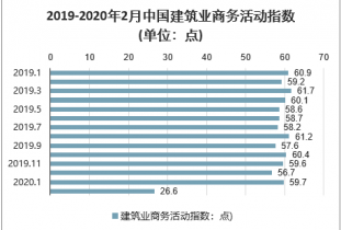受疫情影響,2月行業(yè)景氣度顯著下滑,原因是大部分時間處于停工狀態(tài),2020年2月中國建筑業(yè)商務(wù)活動指數(shù)為26.6,環(huán)比回落33.1,同比回落32.9;從分項指標看,新訂單指數(shù)23.8,環(huán)比下降30.0。