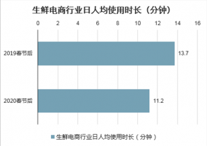 生鮮電商行業(yè)日人均使用時長(分鐘)