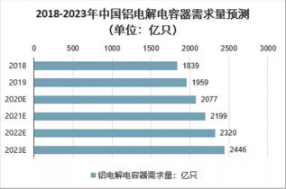 保守預(yù)測,我國未來幾年鋁電解電容器的需求量增速約為6%,按照這一數(shù)據(jù)進行初步估算,到2023年,我國鋁電解電容器的需求量將超過2400億只。
