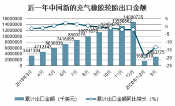 近一年中國(guó)新的充氣橡膠輪胎出口金額