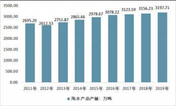 2011-2019年我國海洋漁業產值規模走勢圖 |