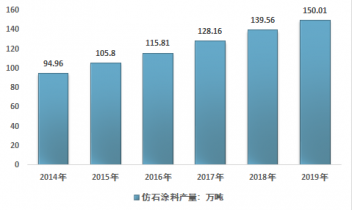 一、2015-2019年中國仿石涂料產量回顧
