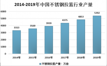 近幾年,我國不銹鋼拉籃行業(yè)產量快速增長,從2014年的3313萬套增長到了2019年的5392萬套,近幾年我國不銹鋼拉籃行業(yè)產量情況如下圖所示:
