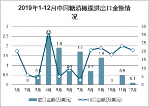 2019年1-12月中國糖漬橄欖進出口金額情況
