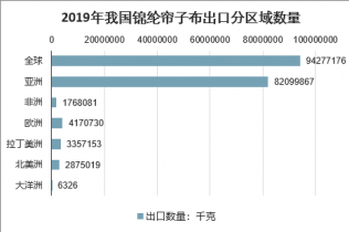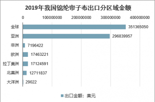 我國錦綸簾子布出口以亞洲周邊市場為主,2019年出口至亞洲市場的產品總量為8.21萬噸,總金額為2.97億美元,區域出口均價為3615.60美元/噸;歐洲地區是我國錦綸簾子布第二大出口區域,年度出口總量為4170.73噸,總金額為1746.32萬美元,區域出口均價為4187.09美元/噸;拉丁美洲地區是我國錦綸簾子布第三大出口區域,年度出口總量為3357.15噸,總金額為1712.46萬美元,區域出口均價為5100.93美元/噸。