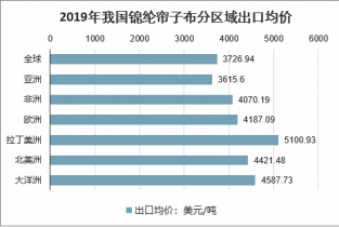 2019年我國錦綸簾子布分區域出口均價