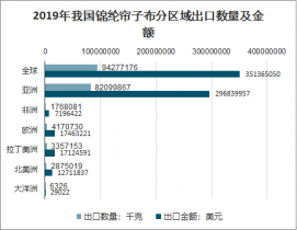 2019年我國錦綸簾子布分區域出口數量及金額