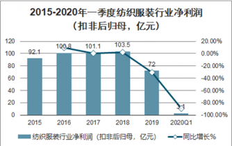 2015-2020年一季度紡織服裝行業(yè)凈利潤(扣非后歸母,億元)