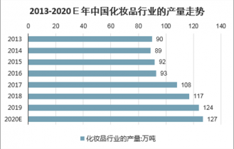 2013-2020E年中國(guó)化妝品行業(yè)的產(chǎn)量走勢(shì)