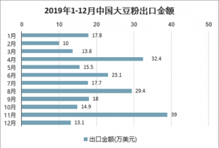 2019年1-12月中國大豆粉出口金額