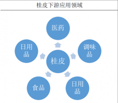 桂皮為藥食兩用之品,相關產品涉及醫藥、調味品、日用品、食品、農藥等領域。桂皮使用范圍廣,用量大,是國際上重要的藥用植物品種。