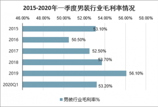 2015-2020年一季度男裝行業(yè)毛利率情況