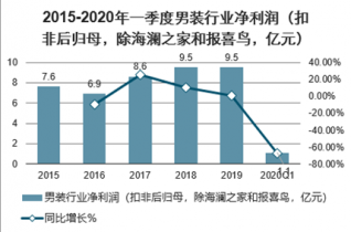 2015-2020年一季度男裝行業(yè)凈利潤(扣非后歸母,除海瀾之家和報喜鳥,億元)