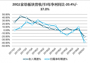 20Q1家紡板塊營收/歸母凈利同比-20.4%/-37.0%