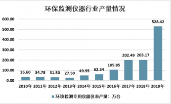 近幾年,我國環保監測儀器行業產量快速增長,從2010年的35.6萬臺增長到了2019年的528.42萬臺。近幾年我國環保監測儀器行業產量情況如下圖所示:
