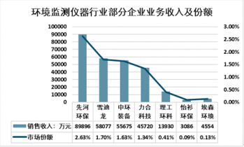 2019年我國環境監測儀器行業部分企業業務收入及份額統計
