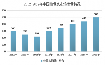 近幾年,我國熱量表市場銷量整體呈現快速增長態勢,從2012年的300萬臺增長到了2019年的500萬臺。近幾年國內熱量表市場銷量情況如下圖所示: