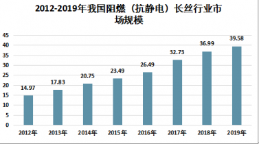2012年我國阻燃(抗靜電)長絲行業市場規模為14.97億元,2019年我國阻燃(抗靜電)長絲行業市場規模增長至39.58億元,2012年以來我國阻燃(抗靜電)長絲行業市場規模復合增長率為12.92%。