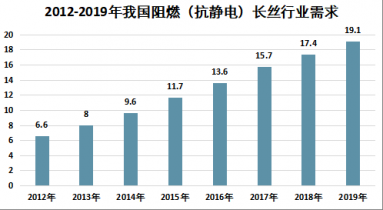 2012-2019年我國阻燃(抗靜電)長絲行業市場規模走勢圖