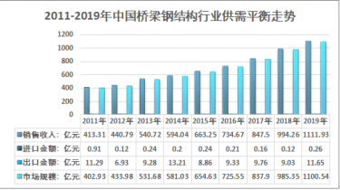 2011-2019年中國橋梁鋼結構行業供需平衡走勢