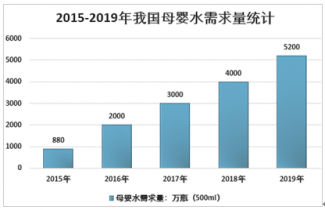 2015-2019年我國母嬰水行業(yè)需求量統(tǒng)計(jì)圖