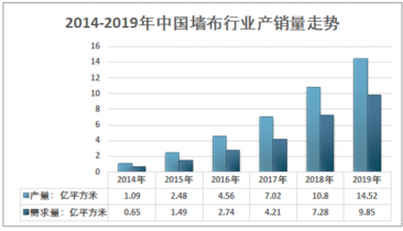 2014-2019年中國墻布行業(yè)產(chǎn)銷量走勢