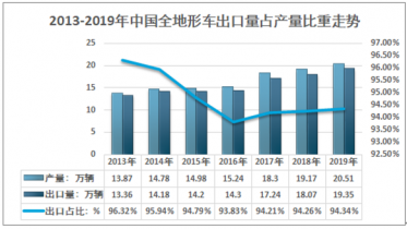 2013-2019年中國全地形車出口量占產(chǎn)量比重走勢