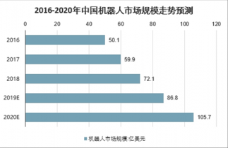 預(yù)計(jì)到2020年中國(guó)機(jī)器人市場(chǎng)規(guī)模將突破100億美元,2016-2020年的平均增長(zhǎng)率達(dá)到20.5%。