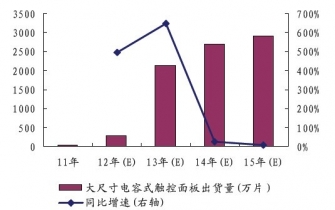 2011-2015年大尺寸電容式觸控面板出貨量預(yù)測(cè)