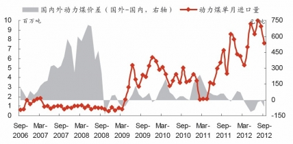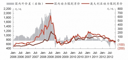 通過進口影響,國內(nèi)外煤價逐步趨于一致