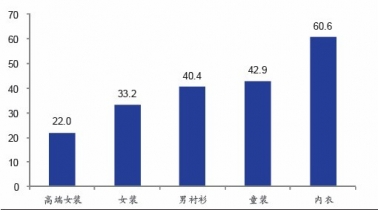 橫向看,2011年高端女裝前十大品牌銷售額占比約22%,與男襯衫(40.4%)、童裝(42.9%)等其他服裝品類相比,行業集中度處于較低水平;