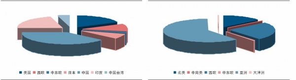 左:吡啶產能格局右:吡啶及其衍生物全球消費格局