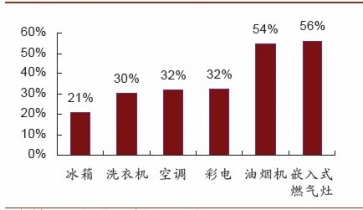 中企顧問網(wǎng)發(fā)布的《2012-2016年中國智能家電行業(yè)市場分析及投資前景研究報告》指出:房地產(chǎn)同家電消費存在相關(guān)性。經(jīng)測算,2008-2011年商品房竣工帶動國內(nèi)大家電消費占比基本上達到1/3,油煙機和燃氣灶占比更高,接近2/3。大家電1/3的市場來自農(nóng)村,1/3的市場來自城市更新,1/3的市場來自新房裝修。而油煙機和燃氣灶缺乏農(nóng)村需求。
