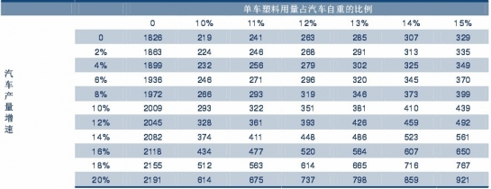 汽車塑料消費(fèi)量情景分析(萬噸)