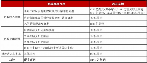 美國(guó)財(cái)政懸崖內(nèi)容與規(guī)模
