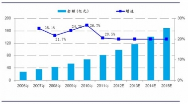 2006-2015年中國抗血栓藥物市場規(guī)模及增速預(yù)測