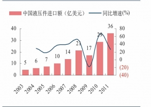 2003-2011年中國液壓件進口額及增速統(tǒng)計