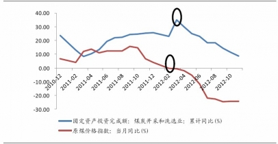 煤炭開采和洗選業(yè)固定資產(chǎn)投資與原煤價(jià)格指數(shù)關(guān)系
