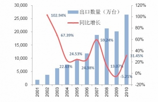 2001-2010年我國農(nóng)機(jī)出口數(shù)量的變化