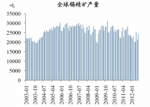 原因是中國錫產量在政府保護政策下基本穩定或小幅下降,但印尼錫產量在洪災地震海嘯頻發及政府保護下下降較快。2013年1月7日,印尼最大錫生產商PTTimah公司表示不再增加2013年精錫產量計劃,將維持2012年大致3萬噸精錫產量的水平。這是基于公司對未來錫價是否持續下跌以及減產后對下游買家的影響情況如何等不確定性因素的考慮而做出的決定。