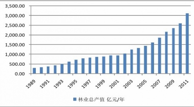 1989-2011年中國(guó)林業(yè)總產(chǎn)值概況